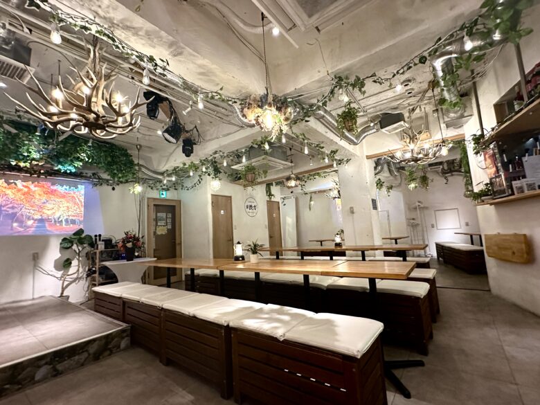 ハロウィンパーティーの成功は、空間の雰囲気づくりにかかっています。オレンジと黒の装飾、ジャック・オ・ランタン、蜘蛛の巣ガーランドなどを持ち込んで会場を飾り付けましょう。渋谷ガーデンパティオは装飾の持ち込みOKで、ステージ付きのインドアガーデン風空間をハロウィン仕様にカスタマイズできます。プロジェクターでホラー映画を流したり、仮装コンテストの投票をしたりと、設備を活かした演出で一味違うハロウィンを楽しんでください。